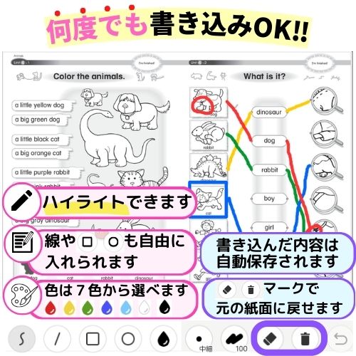 【ご注意】デジタルブックに書き込んだ内容は自動保存されるため、保存不要の場合は消しゴムで消してください。