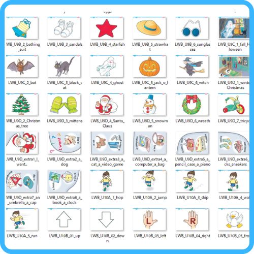 ・オンラインレッスンで使えるJPG画像180点もあります。幼児クラスの語彙のインプットにご活用ください。
