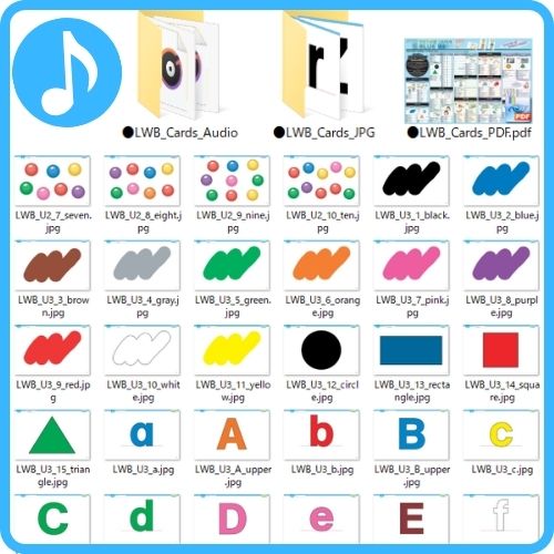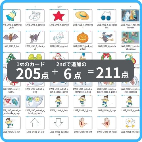 PICTURE CARDS BLUE(税込7,700円)の絵カードデータ174点に、QR付 2ndで追加されたUnit 10B のワード欄:up, down/ left, right/ front, backのデータも入れました。